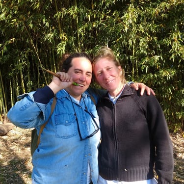 Mi equipo de apoyo: el espíritu del bambú, mi compañera y socia de vida Lucía, y una familia panda que me sostiene (aunque no figure en LinkedIn).