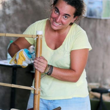 Soy artista, educadora y catalizadora de procesos regenerativos. Desde hace más de una década trabajo con el bambú como tecnología, metáfora y forma de vida. Fundé Planeta Bambú, un ecosistema de innovación regenerativa, y junto a mi pareja creamos Aurora de las Sierras, nuestro laboratorio rural en Uruguay donde sembramos belleza, conciencia y despertamos corazones de tacuaras.